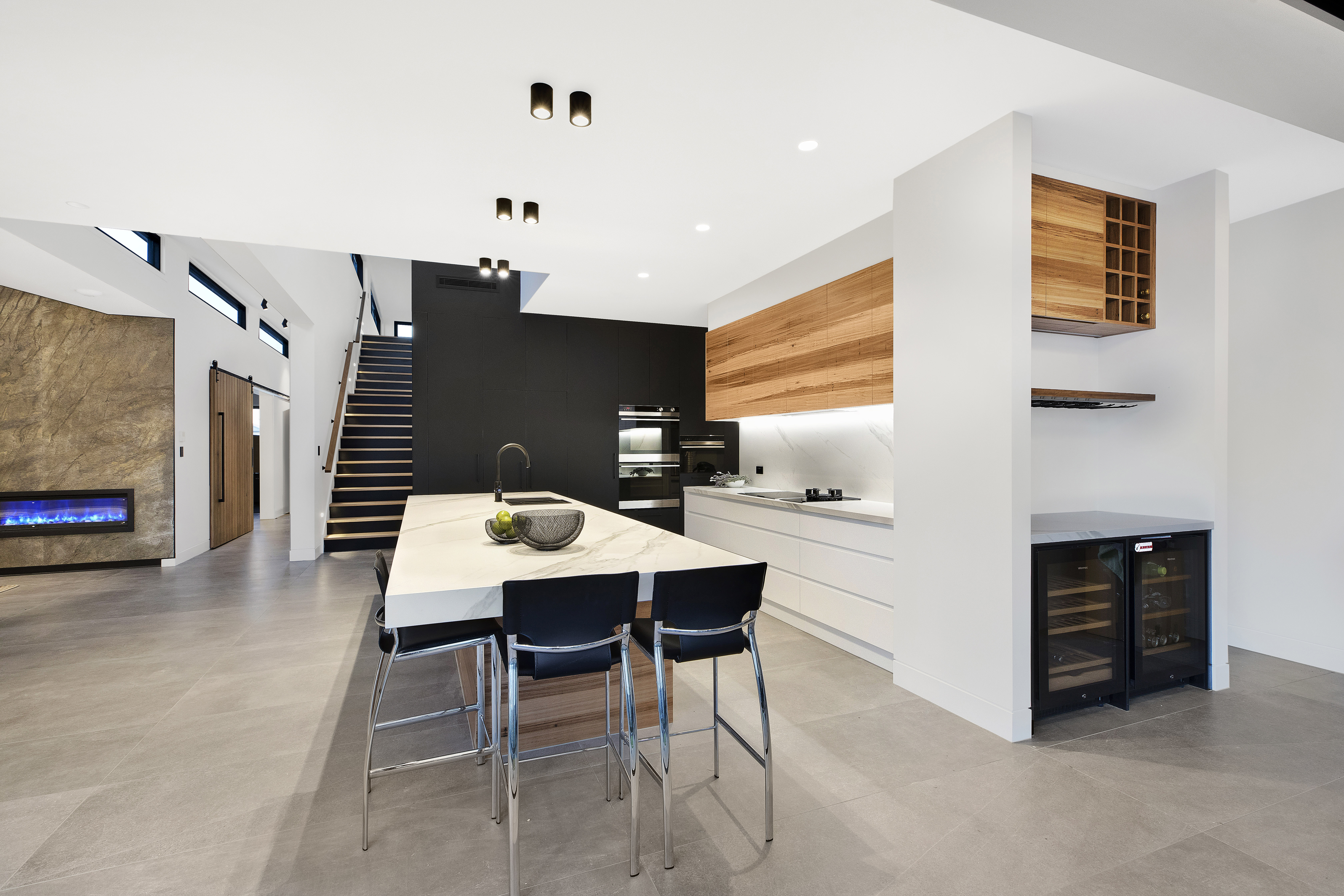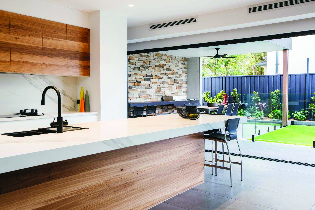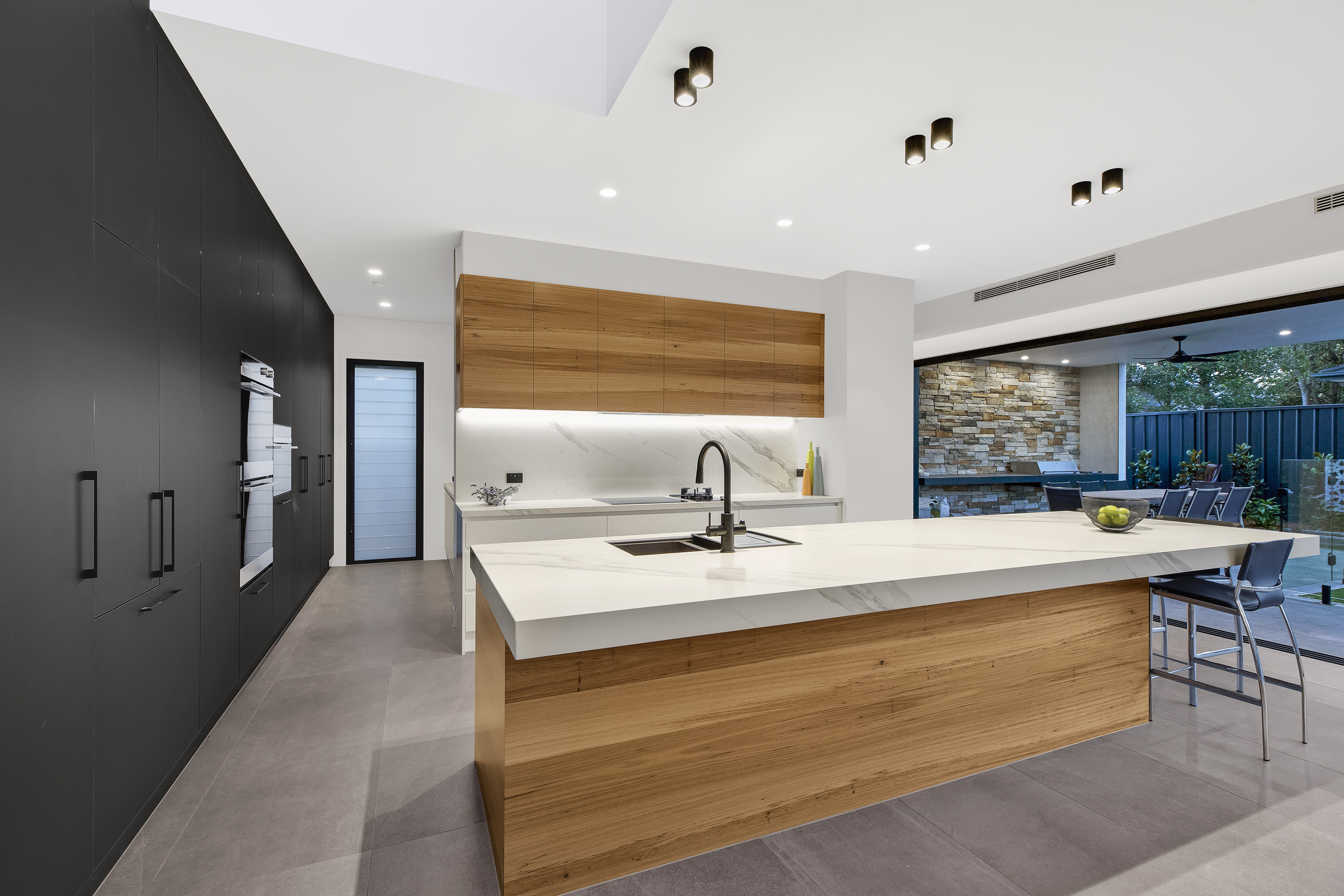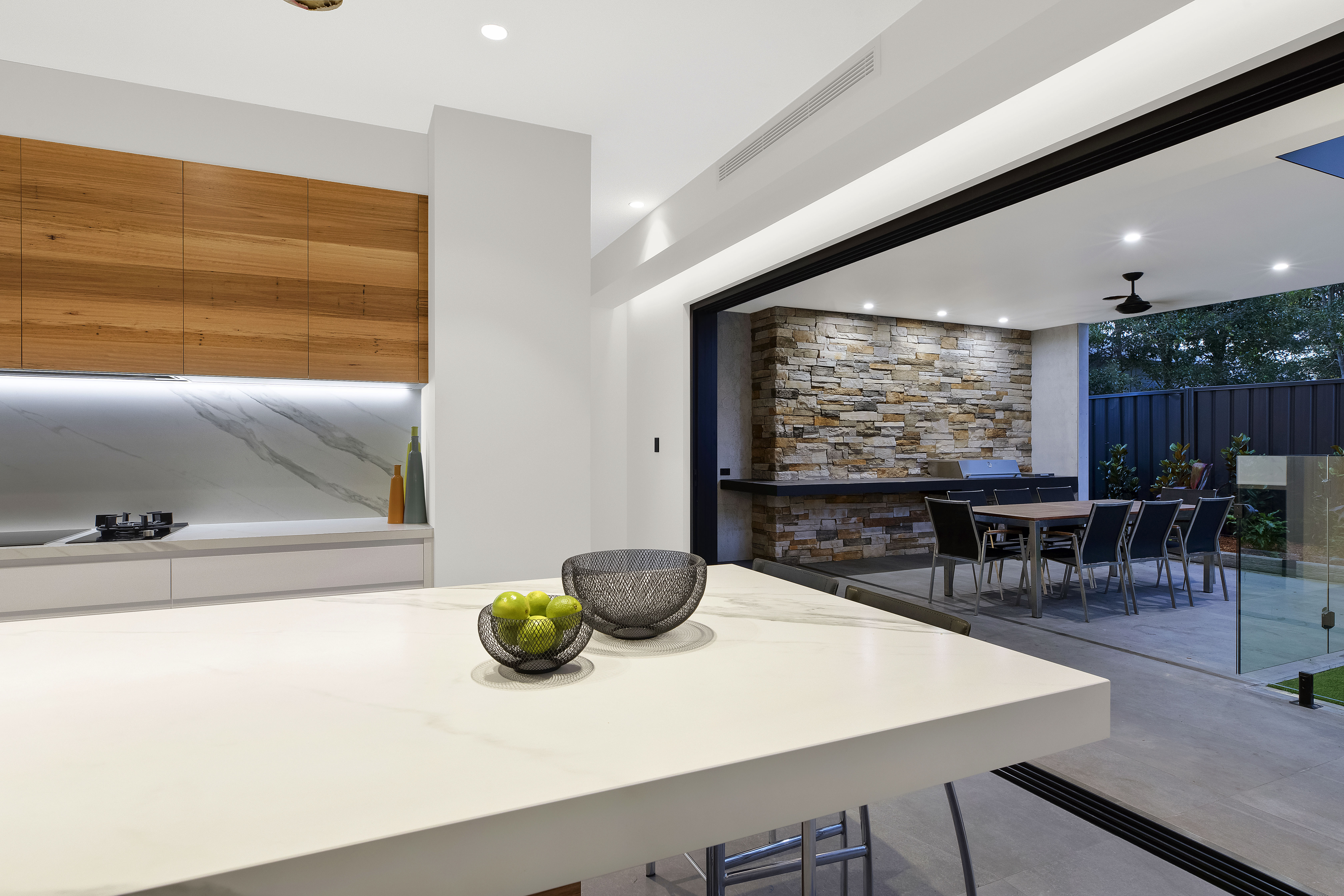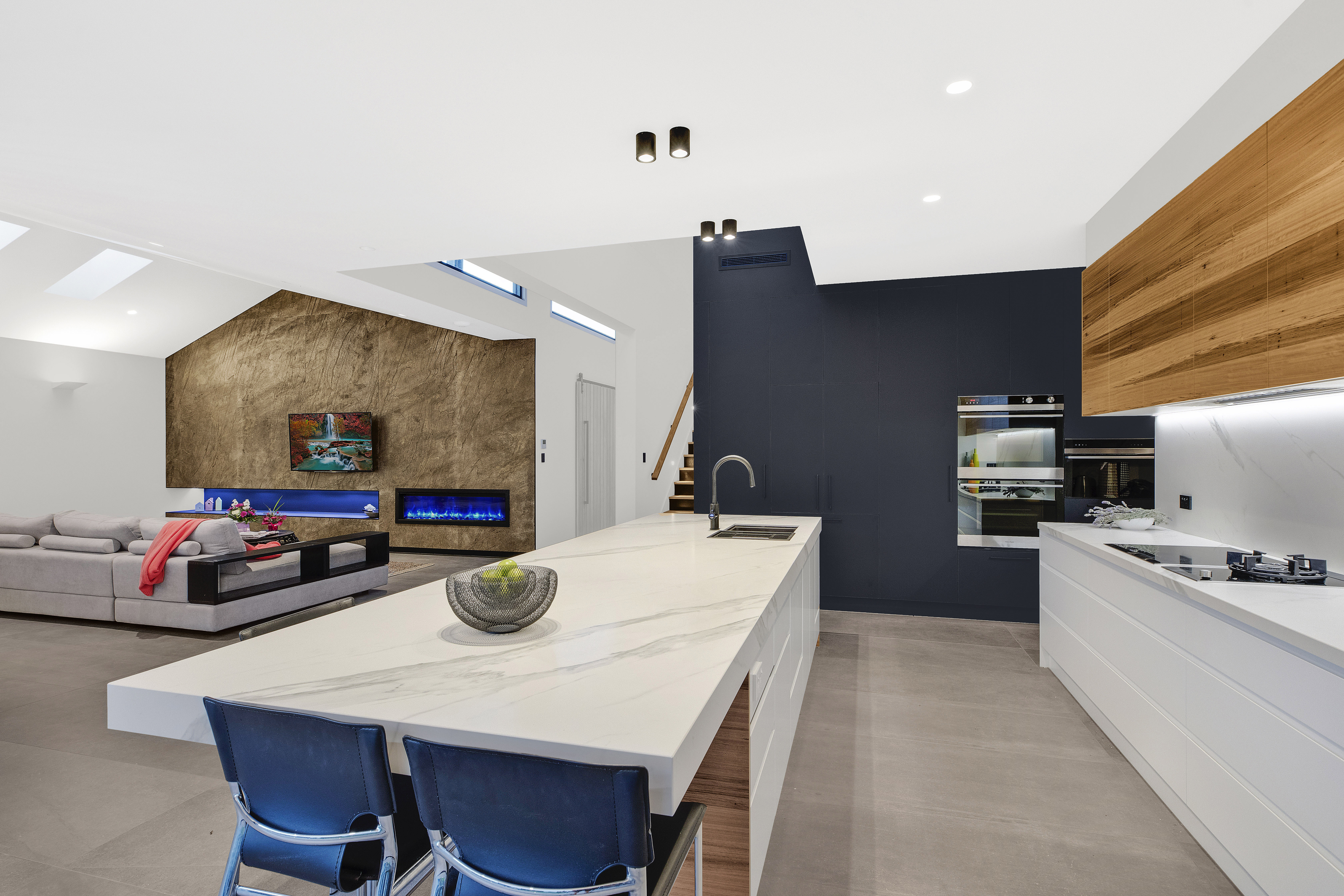 • Absolutely loaded with features this residence has the most delightful kitchen with only the best appliances, feature “Dekton” quartz oversized benches with central breakfast bar, triple ovens, Zip hot and chilled water system, ceramic and gas cooktops, integrated fridges, built in convection microwave, twin dishwashers, huge butlers pantry and separate wine cooler/beer fridge bar. Cleverly designed where the kitchen is the focal point for entertaining or casual family living that overlooks the open living area and easily accesses the outdoor entertaining and pool through the biggest sliding feature doors you will see that frame seamless indoor and outdoor living.