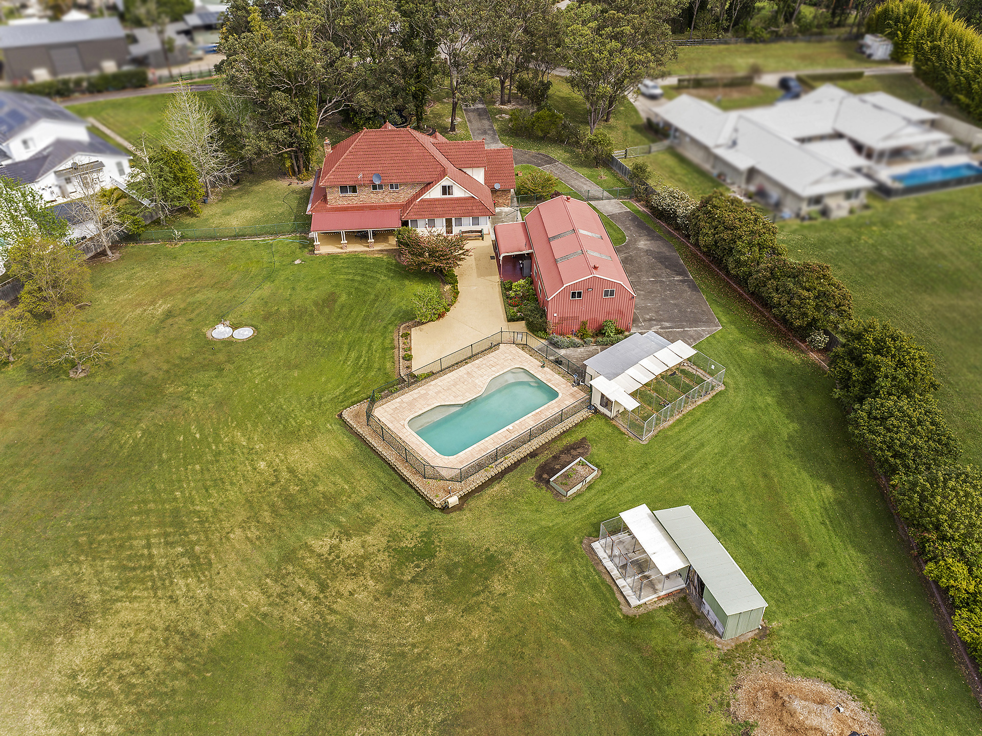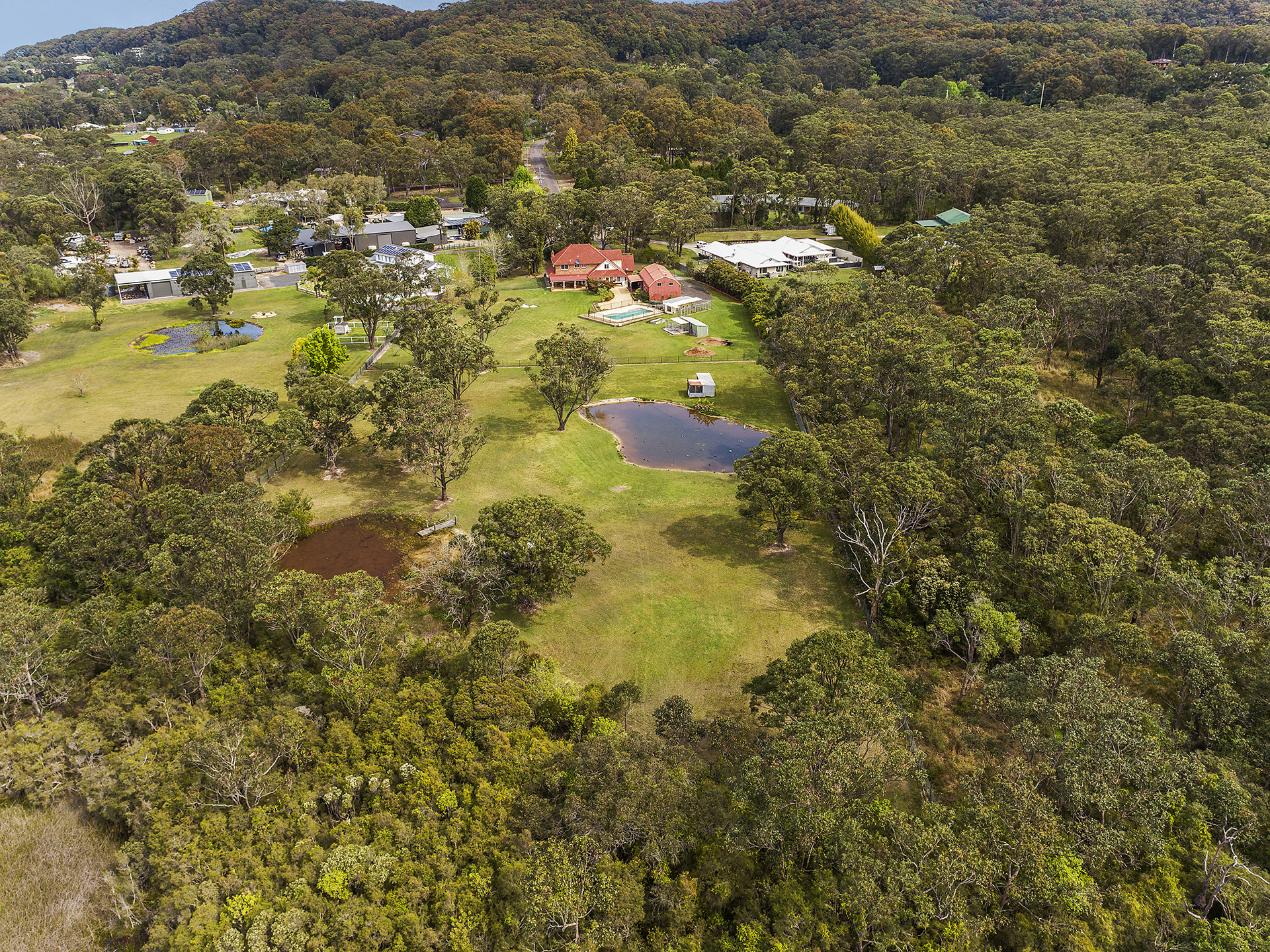 - Manageable and well-maintained 3.45-acre north-facing property bordered by Bushland - Spacious 4 bedroom home with separate home office and an additional loft that holds excellent potential for an additional flexible space for families to enjoy - Formal dining and living area with built-in fireplace, plus casual dining area off the kitchen, and a family room that connects to a cosy sunroom - All bedrooms are generous in size and boast built-in wardrobes, with the main bedroom featuring an ensuite and walk-in robe, Blackbutt timber flooring upstairs - Entertainers' kitchen featuring stone benchtops, a large electric oven and cooktop, dishwasher, breakfast bar, and excellent storage - Oversized internal laundry with storage, an additional shower and toilet, and access to the convenient hobby room - Detached barn-style shed with an additional 3 car garage plus a games room, bathroom and large mezzanine - a versatile space offering potential to be transformed into a workshop, teen retreat, rumpus room or guest accommodation (STCA) - 12ft inground saltwater pool and undercover entertaining area, overlooking the picturesque property - Two dams, one with a jetty and one with a pump connected for irrigation - Town water, and the property is fully fenced - A charming property offering a unique blend of rural and suburban living, surrounded by bushland and conveniently located just minutes from shops, schools, beaches and amenities - Approximately; 5-minute drive to Foresters Beach, 10-minute drive to Bateau Bay Beach and Bateau Bay Square shopping centre, 10-minute drive to Blue Lagoon Beach and 15-minute drive to Erina Fair Shopping