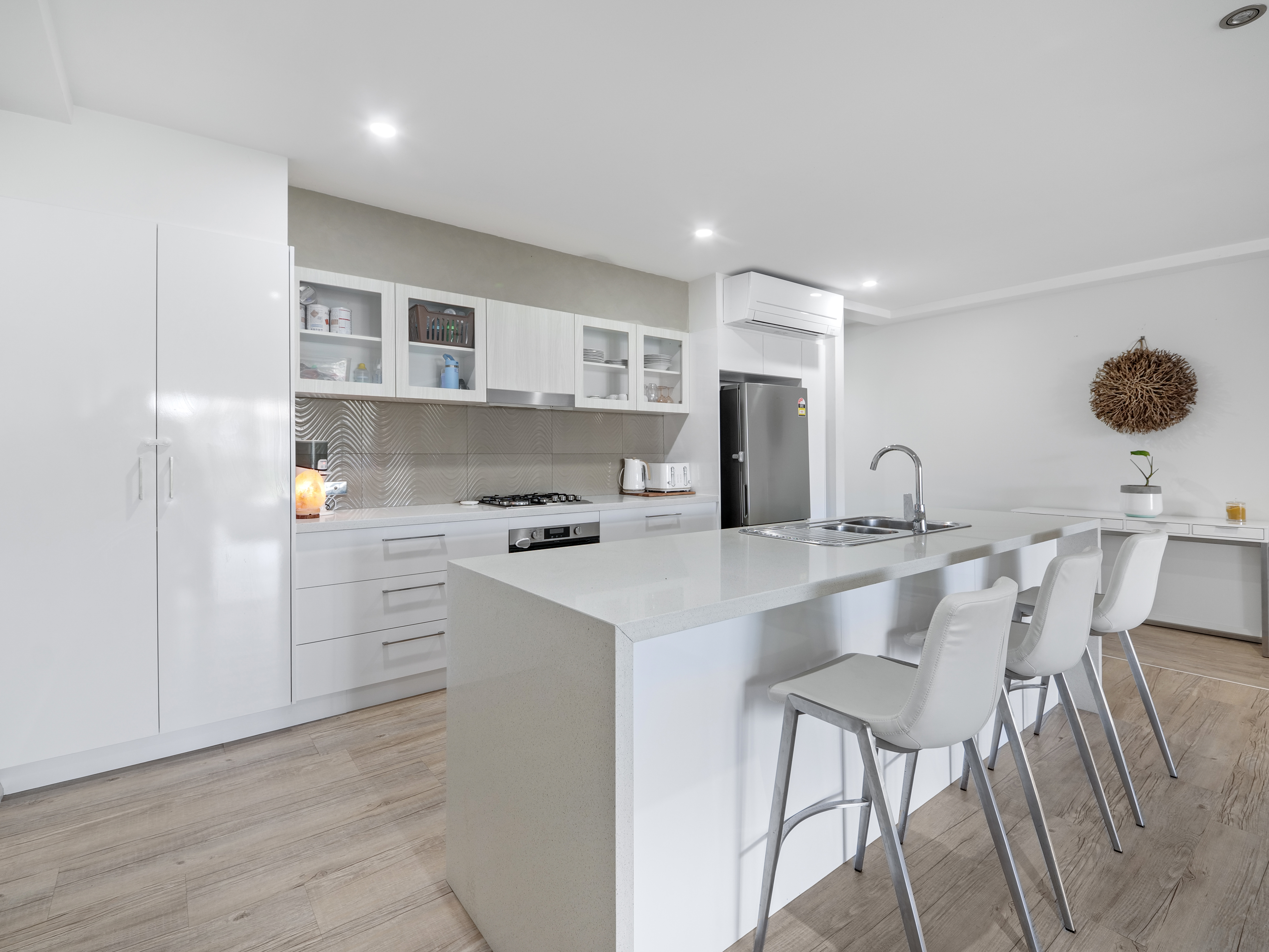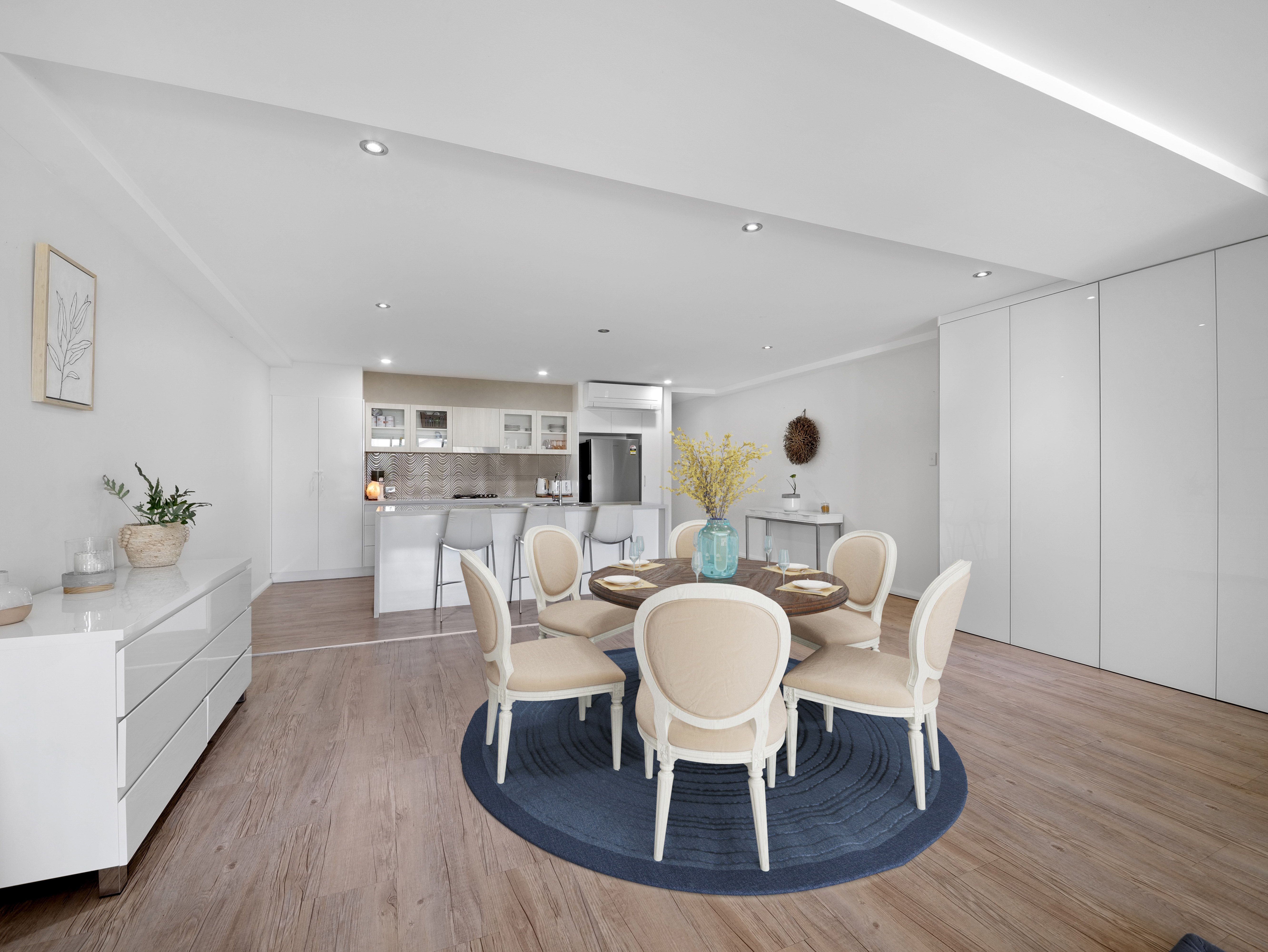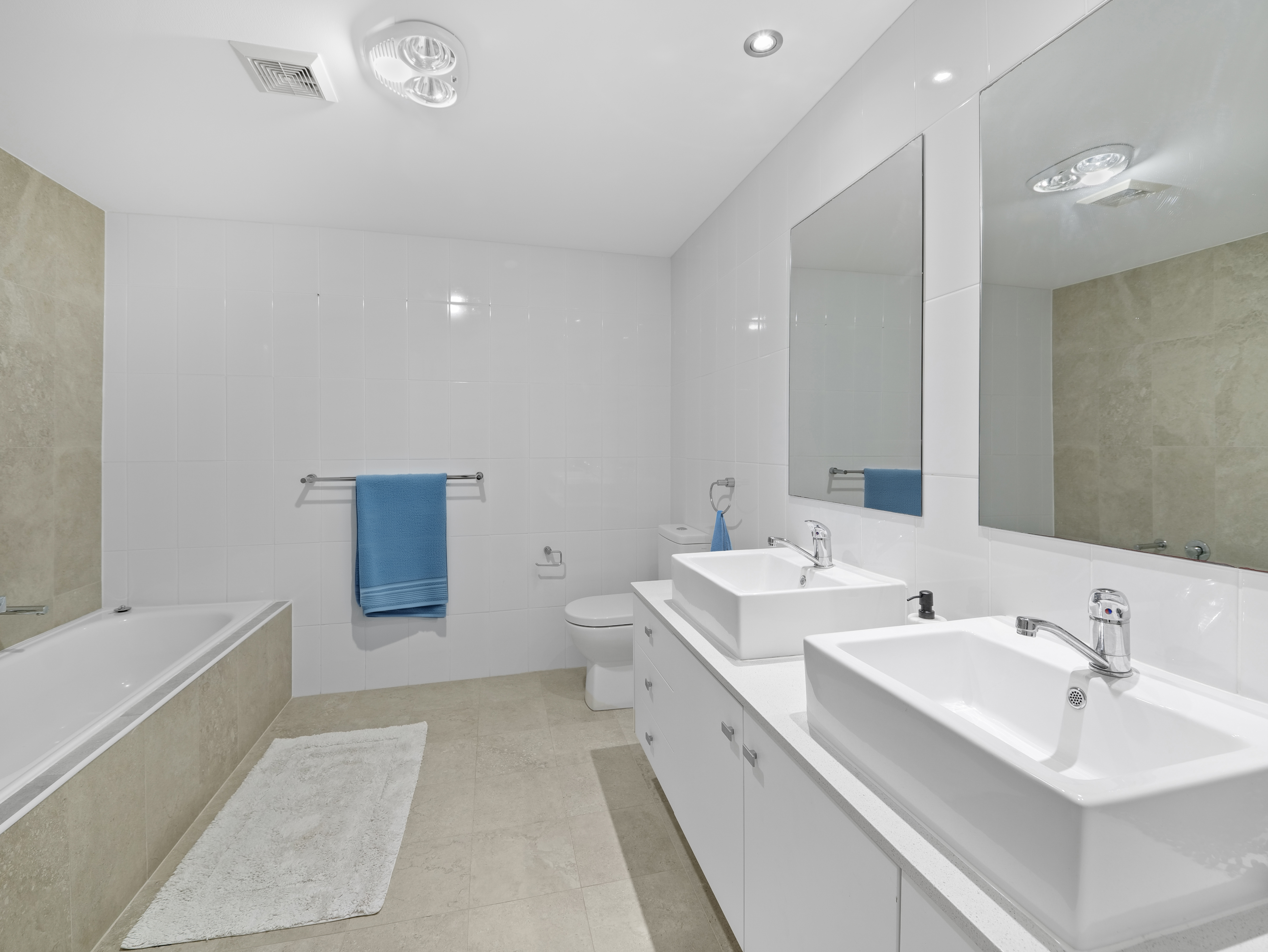 About the apartment: This voluminous, renovated apartment (since built) presents with 2 bedrooms, 2 bathrooms, and an internal laundry–all brought together in an effortless open concept design. The central gourmet kitchen, dining, and living space connect directly with the covered, east facing balcony–from which ocean glimpses can be enjoyed. The master suite features his & hers walk-through wardrobe, stunning ensuite, and access to the second covered balcony with north-west aspect. Bedroom two shares the second balcony with the master suite. The main bathroom is greatly proportioned and well-appointed with his & hers vanity, and a large bath.