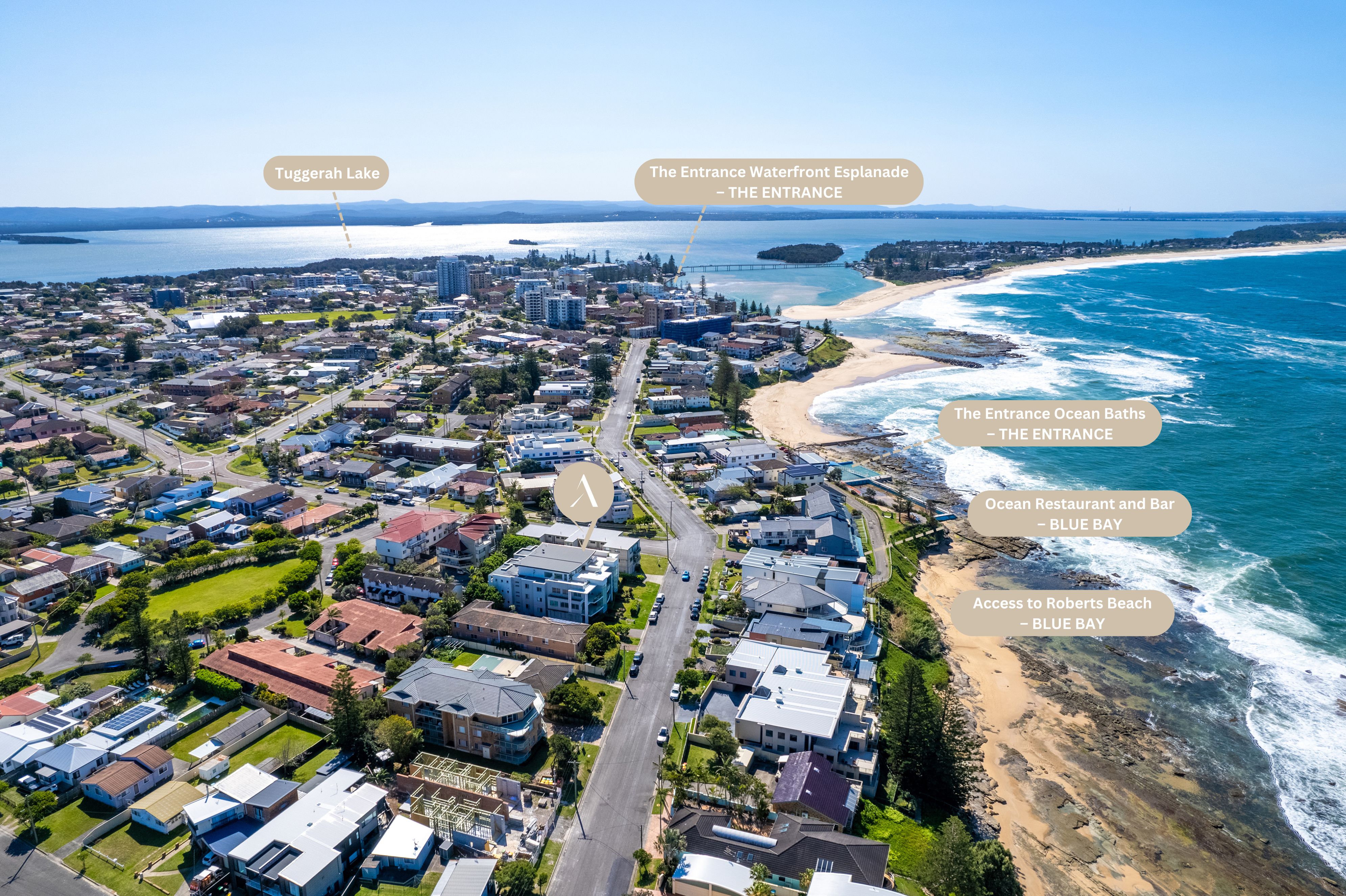 A tour of some notable nearby amenities: • Blue Bay Ocean Restaurant & Bar – 75m • The Entrance Ocean Baths – 145m • Beach access – 77m (via Boondilla) & 243m (via Seaview) • The Entrance Lakeside Shopping Centre – 895m • The Entrance Waterfront Esplanade – 1.2km • Tuggerah Lake Walking Track & Cycleway – 1.5km • Eclectic shops, cafes and entertainment at Long Jetty – 1.7km • Shelly Beach Golf Club – 2.5km & Magenta Shores Golf Club – 4.8km • Mingara Recreation Club – 5.8km
