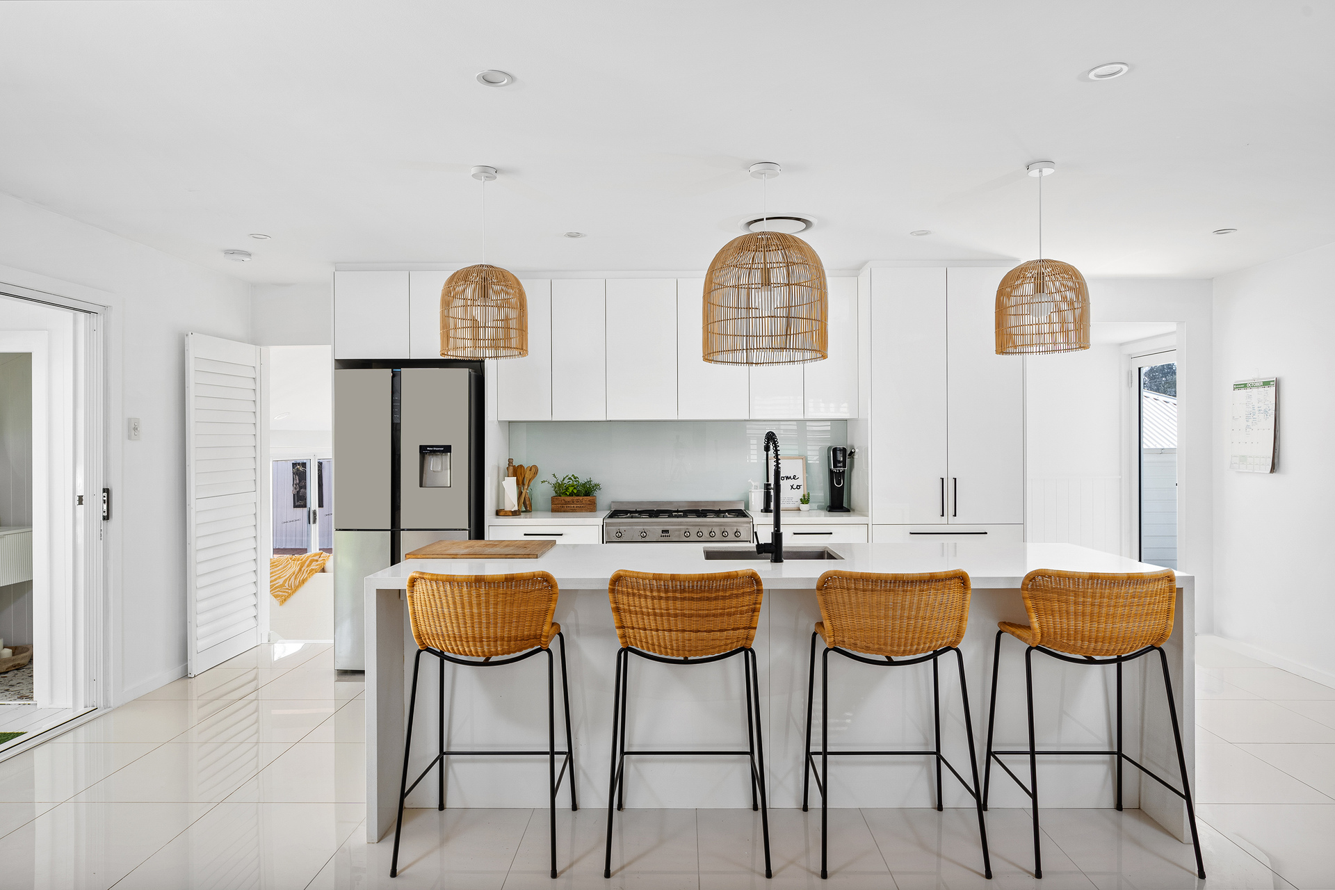 Entertain with ease in the poolside cabana and pool house, where you can relax while enjoying serene river views. Inside, the open plan living area boasts underfloor heating to keep things cozy on chilly mornings, while the chef's kitchen is an entertainer's dream with Caesarstone benchtops, a 900ml gas stove, dishwasher, and a spacious island bar.