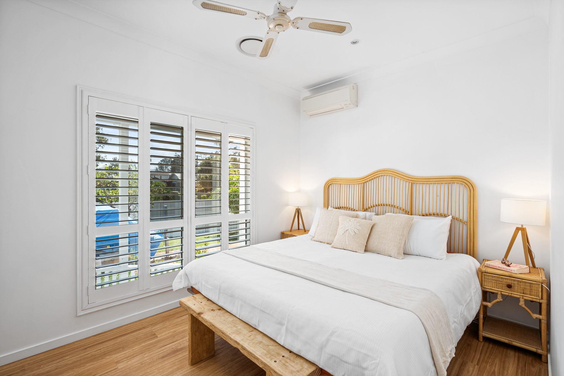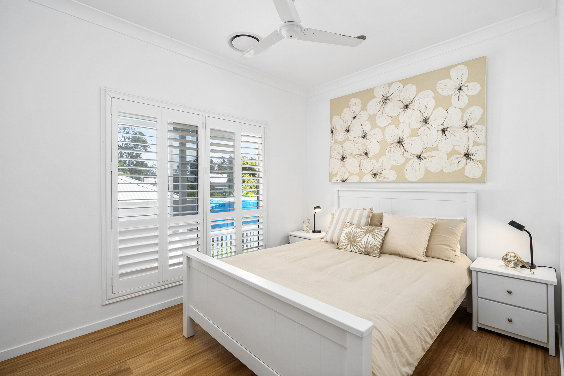 The layout is perfect for families, with a separate family room offering a private space for kids or a home theater, all with calming water views. The master bedroom comes complete with a luxurious ensuite and walk-in robe, while stylish plantation shutters throughout add elegance and privacy. Ducted reverse cycle air conditioning provide additional comfort and practicality.