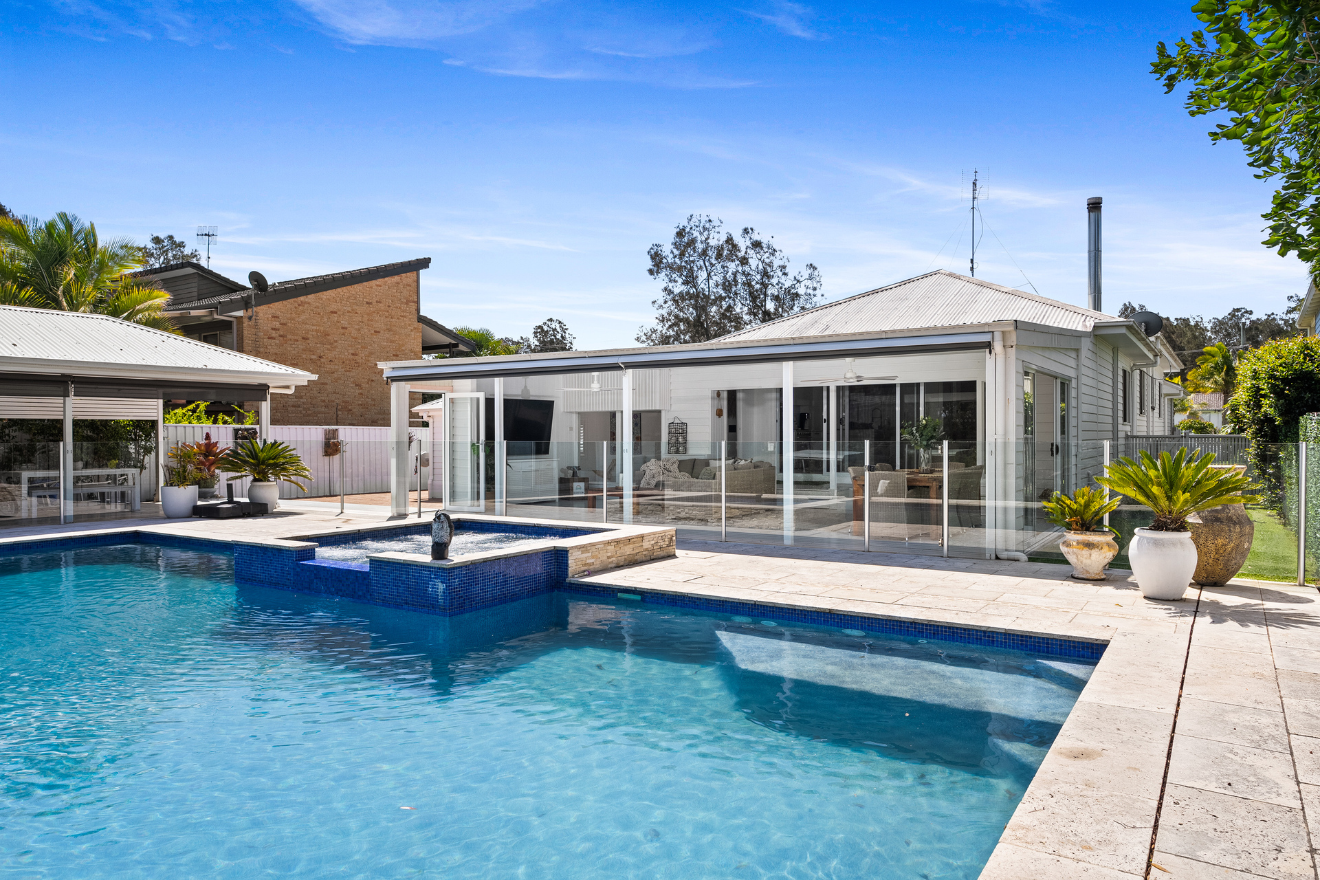 Live the Waterfront Dream: Ultimate Year Round Paradise Launch your boat from the convenience of your own backyard and explore endless waterways, or take a refreshing dip in the stunning, 12m x 5m resort style pool and heated spa. This 1301sqm property offers ultimate water paradise living, featuring a secure, double lock up garage, remote gated entry with ample off street parking for multiple cars, a large caravan, or even a fleet of work vans.
