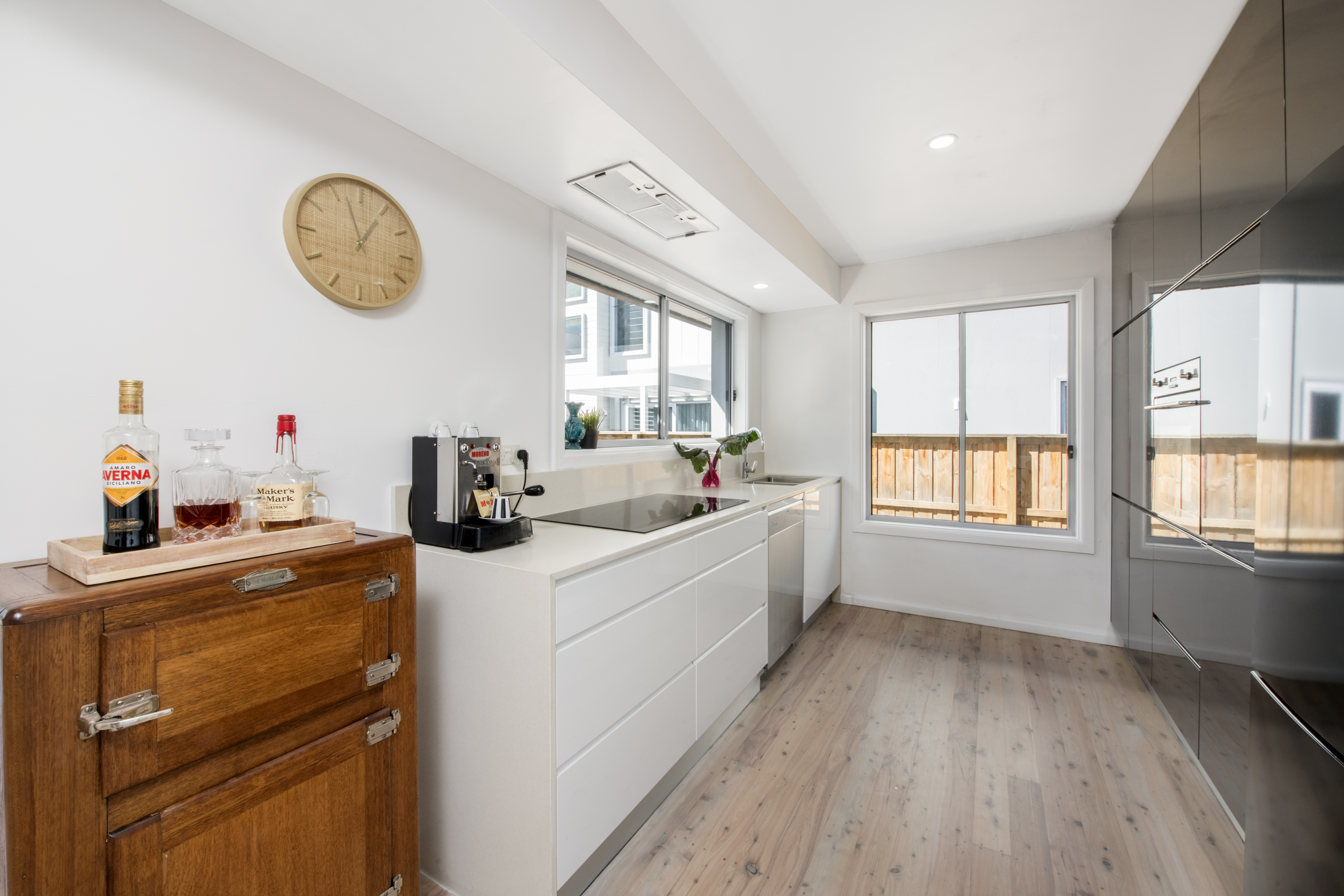 • Designer, chef’s own kitchen with stone benchtops, quality 2-pac painted cabinetry is right in the heart of the home which looks out over the open living and meals area with easy access out to the outdoor entertaining through stacker doors.