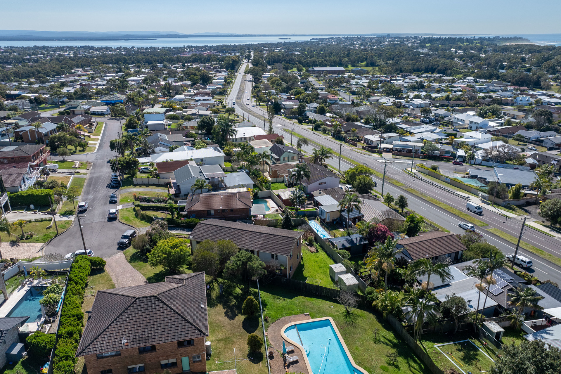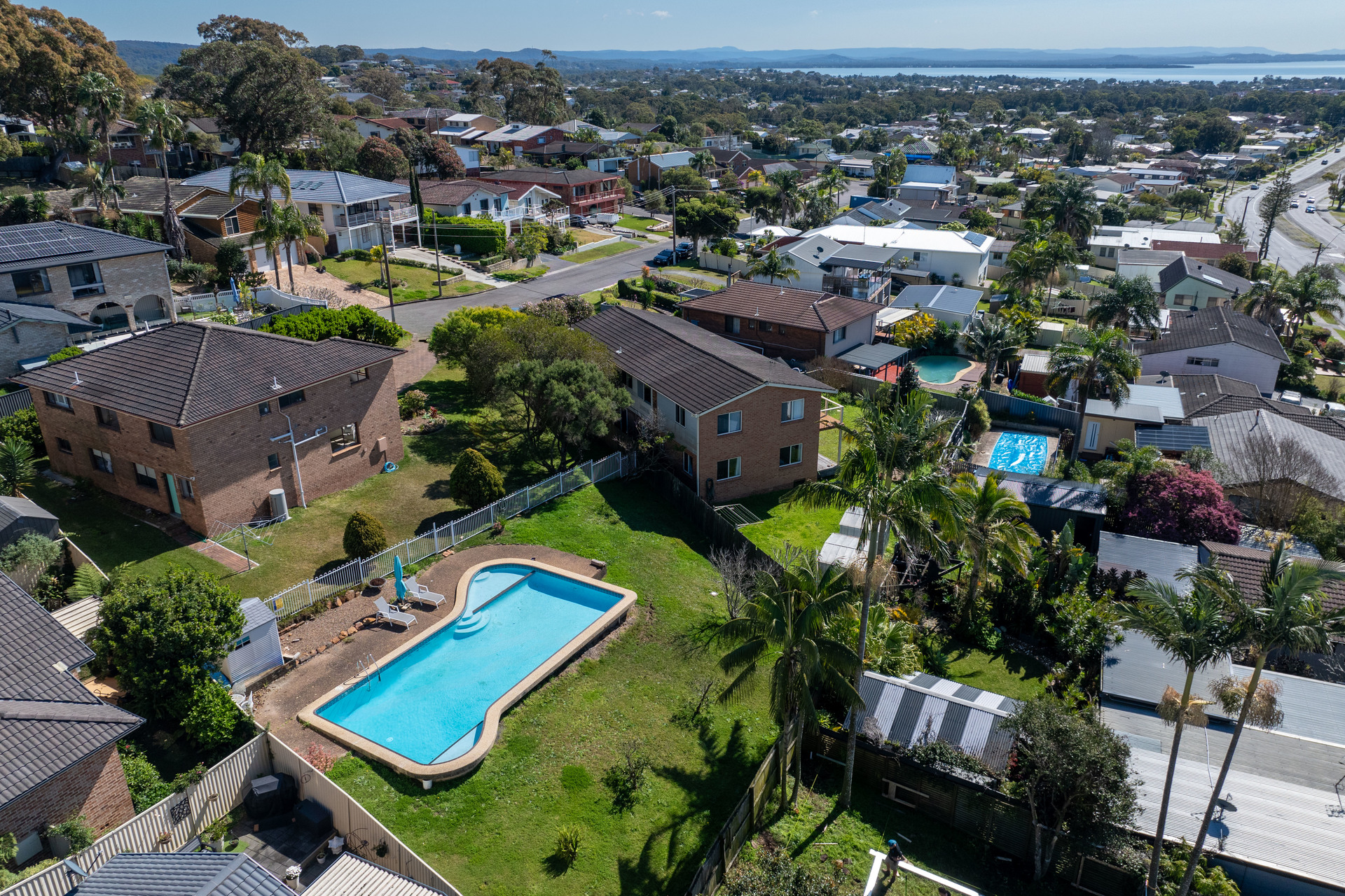 • Quietly set at the tip of the cul-de-sac; expansive, 1,258sqm block • North aspect; Tuggerah Lake views from main living zones + terrace • Dual level layout with living zones and bedrooms on both floors • Sparkling pool along with plenty of lawn space for the kids • Freshly updated interiors; fully renovated kitchen and bathrooms • Three upper level bedrooms with built-ins; views from the master • Newly finished timber floors, new carpets and plantation shutters • Ready to enjoy now and create extra value with additional updates • Excellent potential to subdivide the enormous block (STCA)