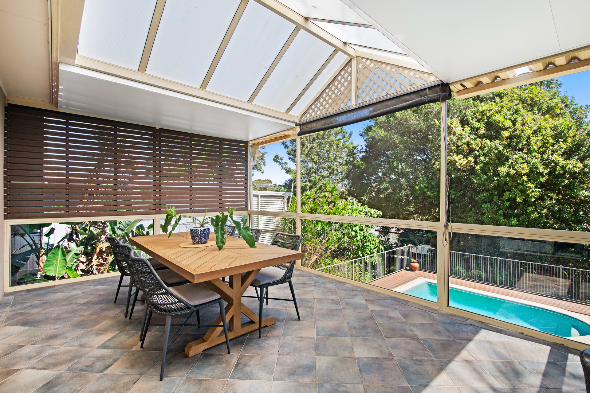 entertaining area • Sparkling inground pool with paved surrounds and child friendly, lush low
