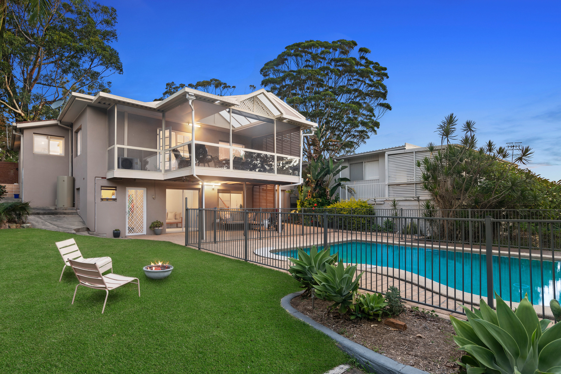 Bateau Bay Beach Perfectly situated just metres from Bateau Bay Beach and on an easy-care block is this stunning family home. The warming and inviting residence offers a spacious and functional layout comprising of formal and informal living zones, stone island bench kitchen and bathrooms with well-proportioned bedrooms, spacious master suite with modern ensuite. Causal living extends to the outdoors featuring covered alfresco pergolas overlooking the near north rear yard with sparkling in-ground pool and child friendly grassy rear yard.