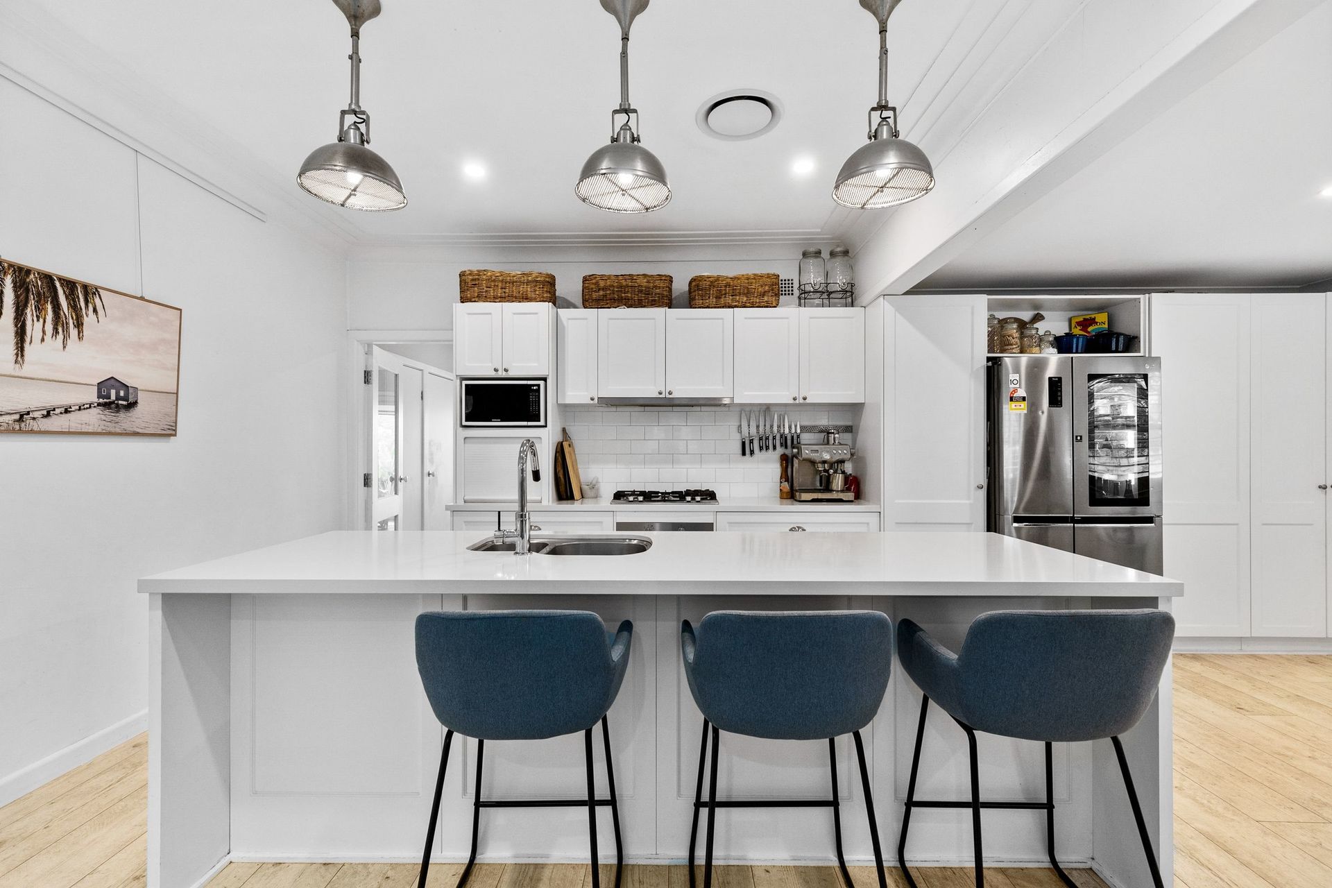 * Gourmet Kitchen with stone bench tops & island seating, loads of storage, natural gas cooktop, subway splash back tiling