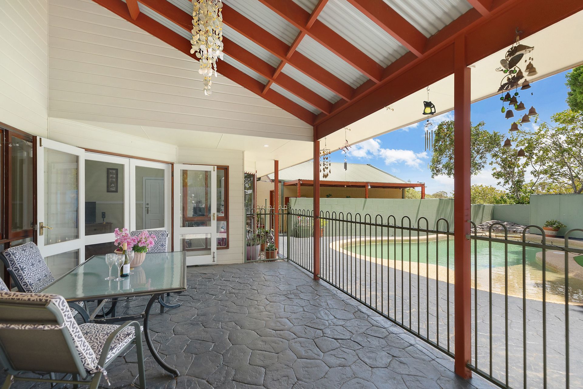 Embracing the essence of contemporary living, the design accentuates open-plan dynamics and lofty ceilings, culminating in an alfresco oasis overlooking a shimmering pool-a perfect setting for entertaining or quiet relaxation.