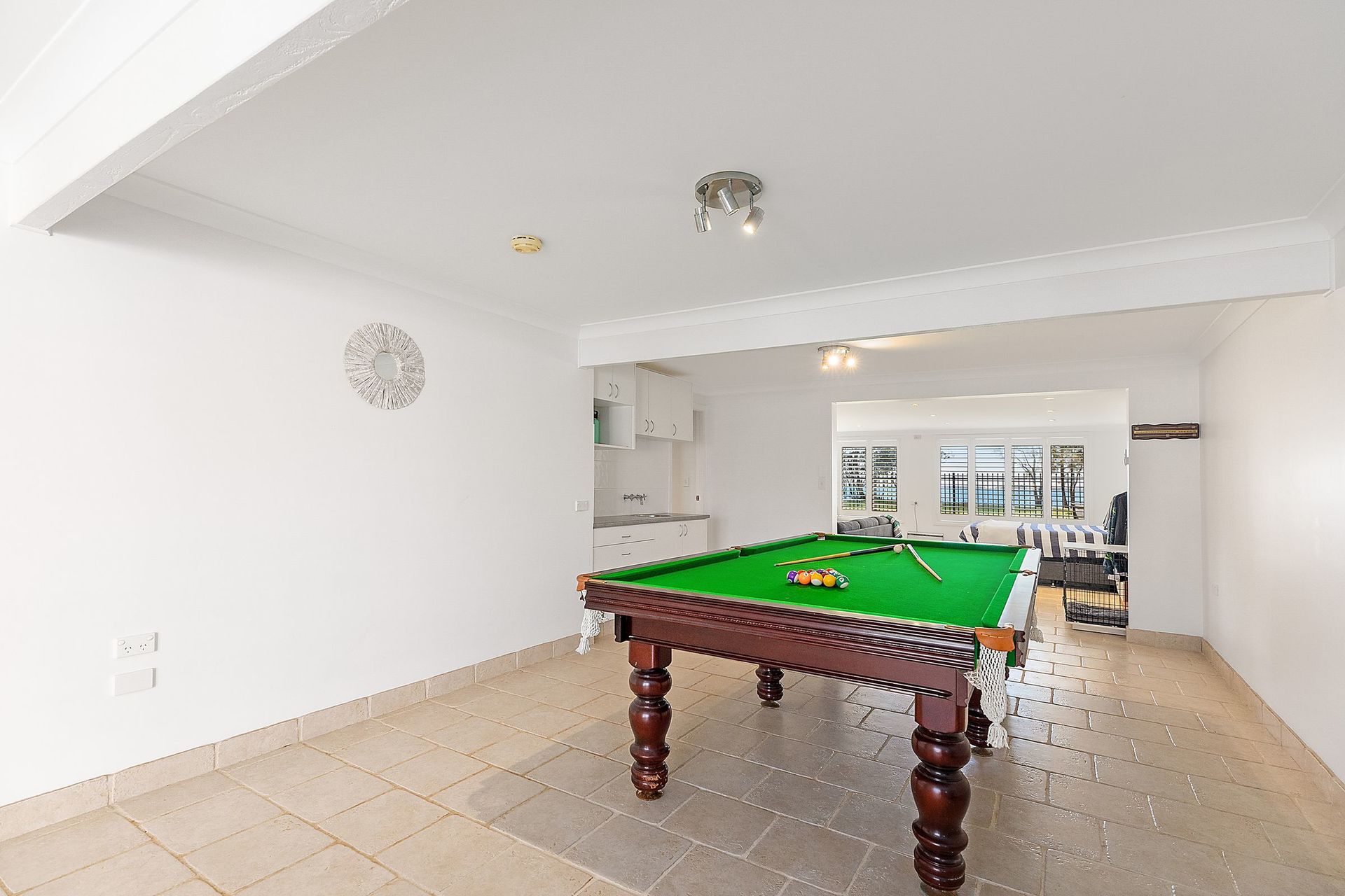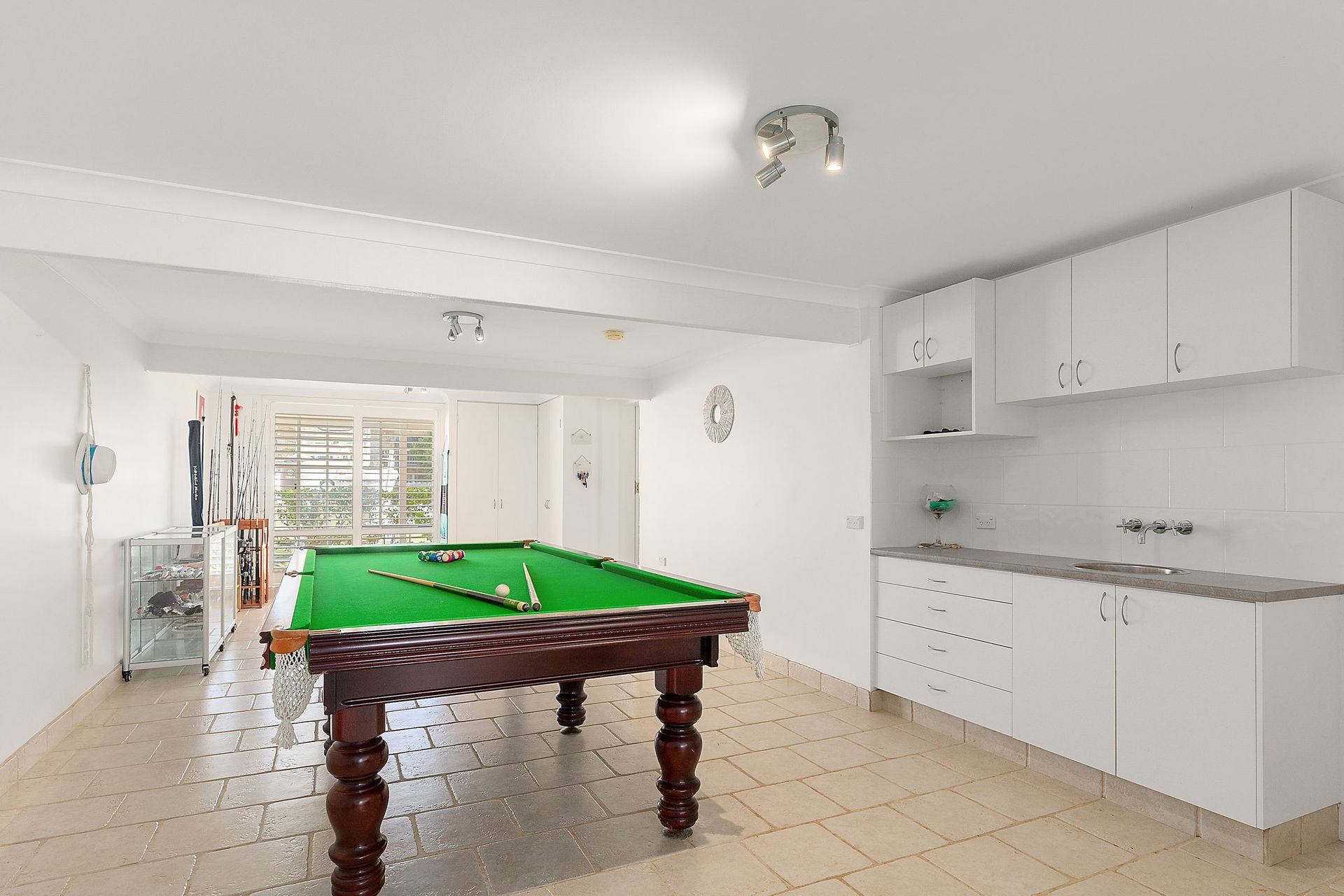 Downstairs: A generous rumpus and games room with kitchenette, guest accommodation with bathroom, laundry, and a triple garage.