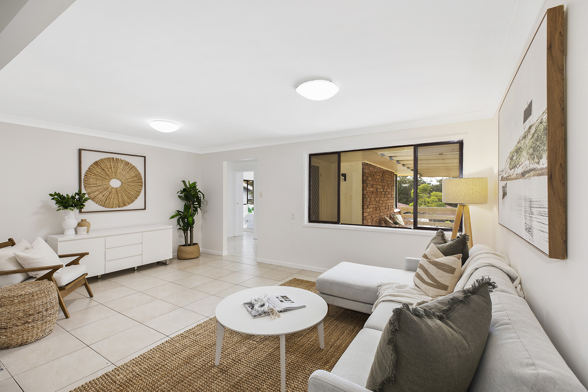 The Best Investment It's got space, low maintenance upkeep, and a potential great rent return. Freshly painted throughout, this spacious four bedroom home is well presented and provides a clean and comfortable property ready for immediate occupancy. Easy care upkeep with brick and tile construction, plus tiled floors throughout ensuring more durability with less susceptibility to wear and tear. Plenty of room to accommodate a family needing extra room to spread, with two large and separate living areas and a built-in home office. Enjoy perfect morning coffee moments outdoors on the sundrenched entry porch. There's also a level backyard for kids to muck around in, additional storage space in the garage as well as under house, plus the home is situated on the high side of the street offering an outlook. Less than a ten-minute drive to the beach and shopping centre, and bus stops only a few minutes walk from your door. If you are a first home buyer or investor (estimated rent return of $600-$700pw), then it is best you move on this one quick.