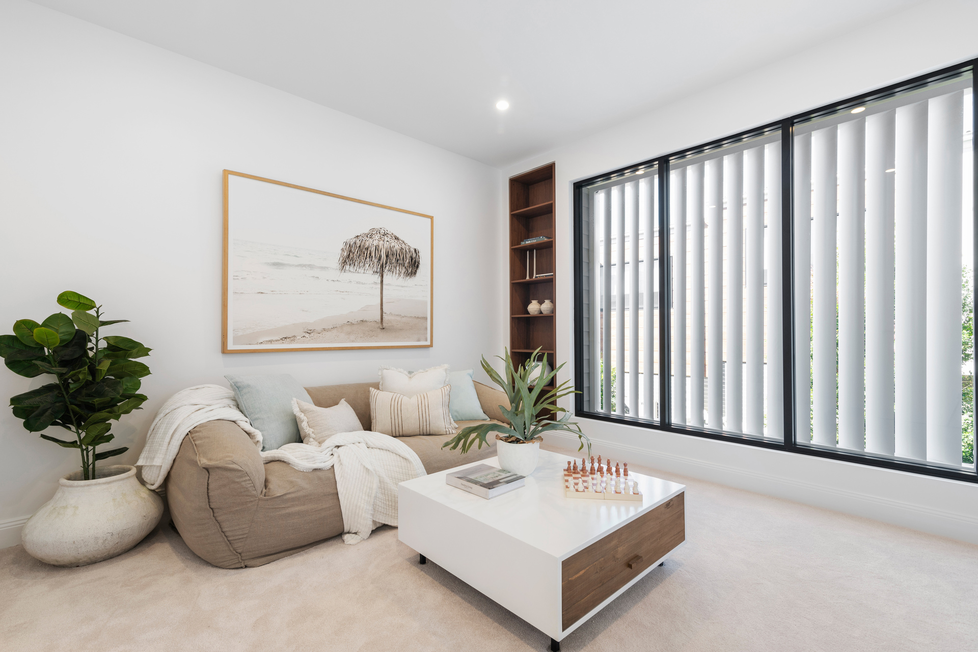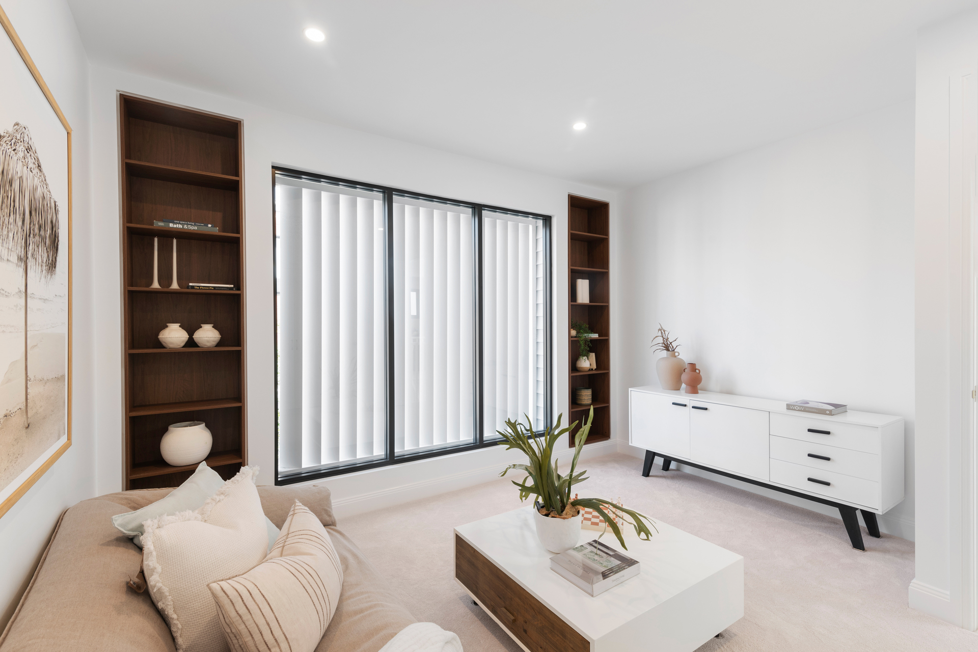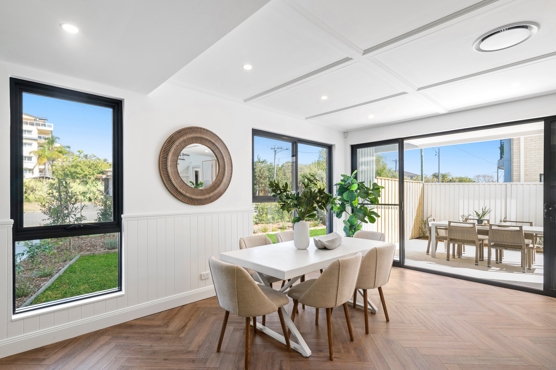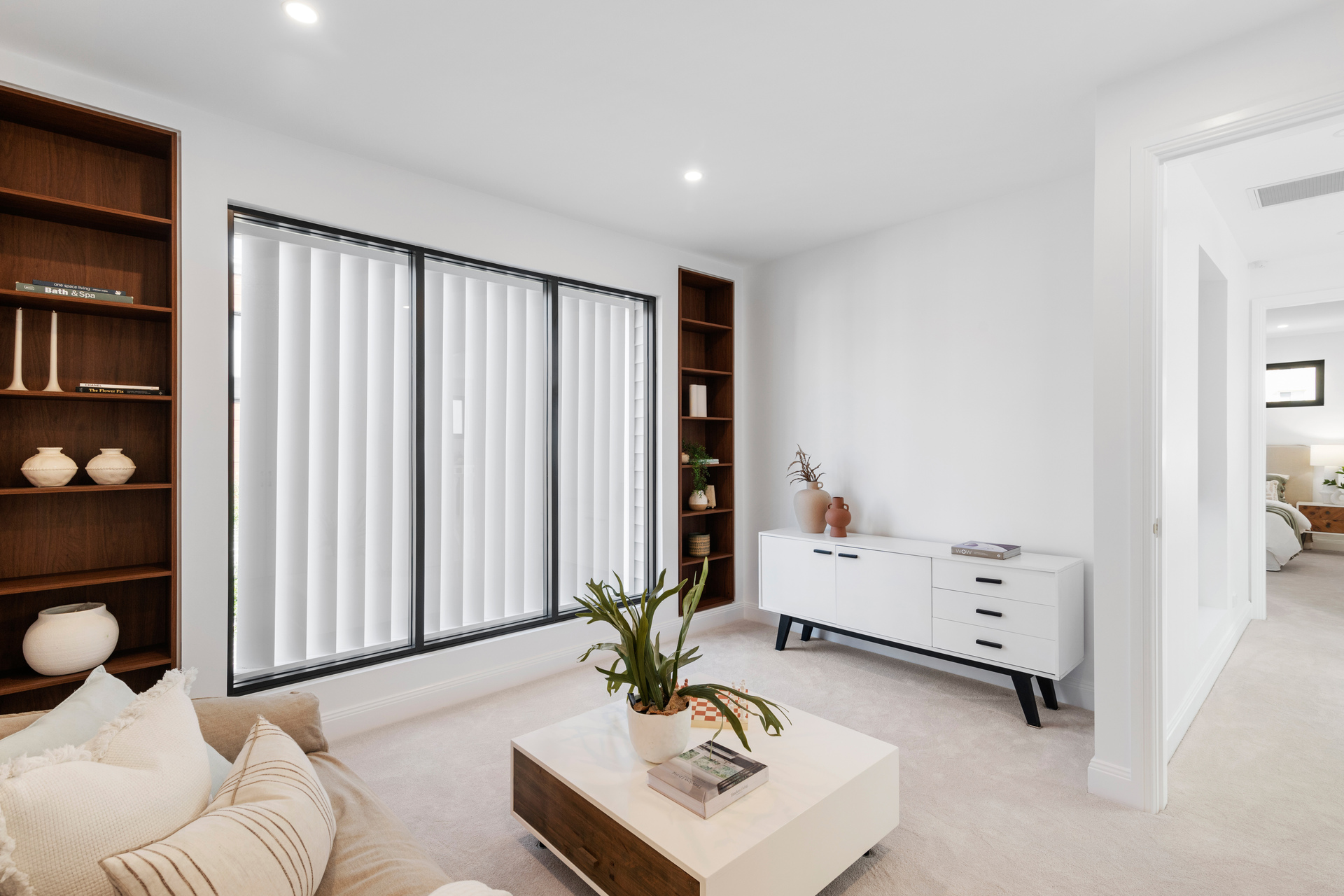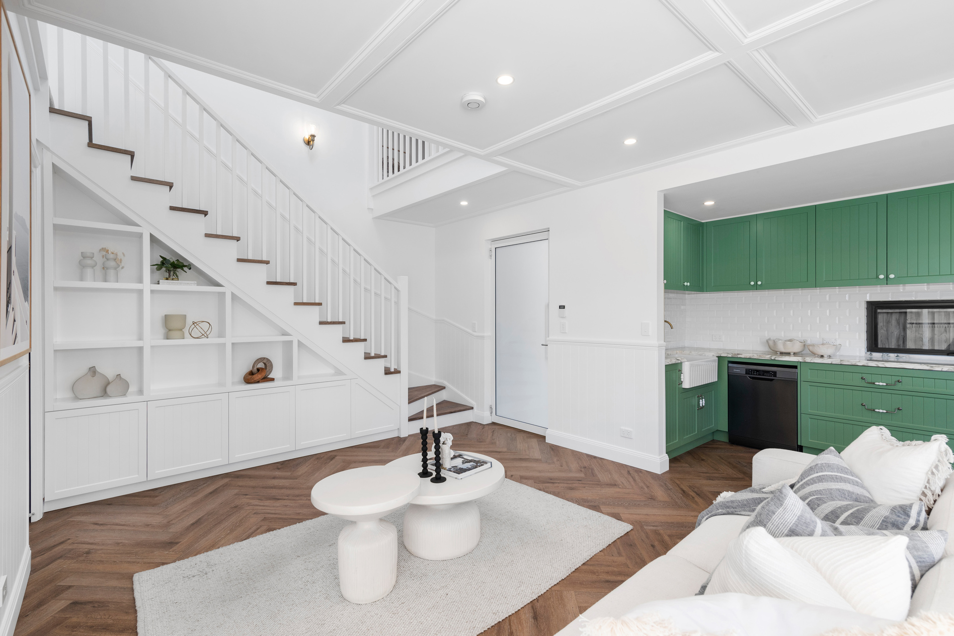 From the timber flooring to the stunning cabinetry throughout, the property is complemented with style and grace. Open-plan in design the home features an open dining and lounge area adjacent to the kitchen; leading out through large sliding glass doors to the al fresco paved entertaining terrace, lawn and low maintenance gardens.