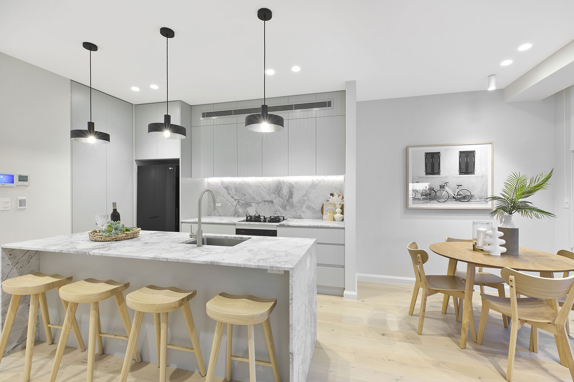 The cleverly designed ground-floor provides spacious living areas for optimal comfort and versatility, offering a seamless flow indoor/outdoor flow to the sunny backyard and covered entertaining area with motorised louvre roof. The luxuriously appointed kitchen features premium appliances, Super White Dolomite stone benchtops, breakfast bar and large double door pantry - presenting the ultimate gourmet hub.